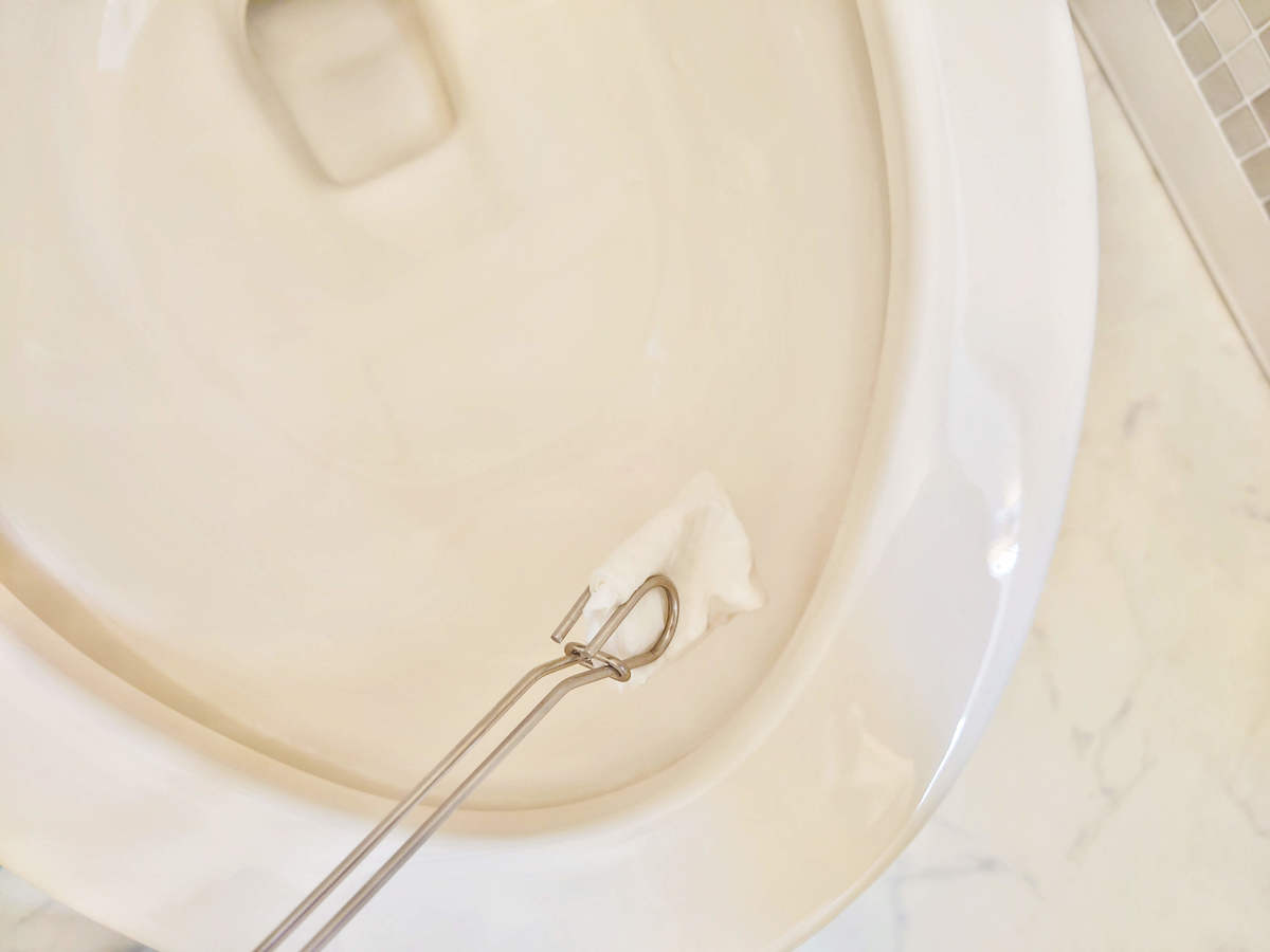 シートを畳んで、トングに挟んで、便器の中を掃除できました。