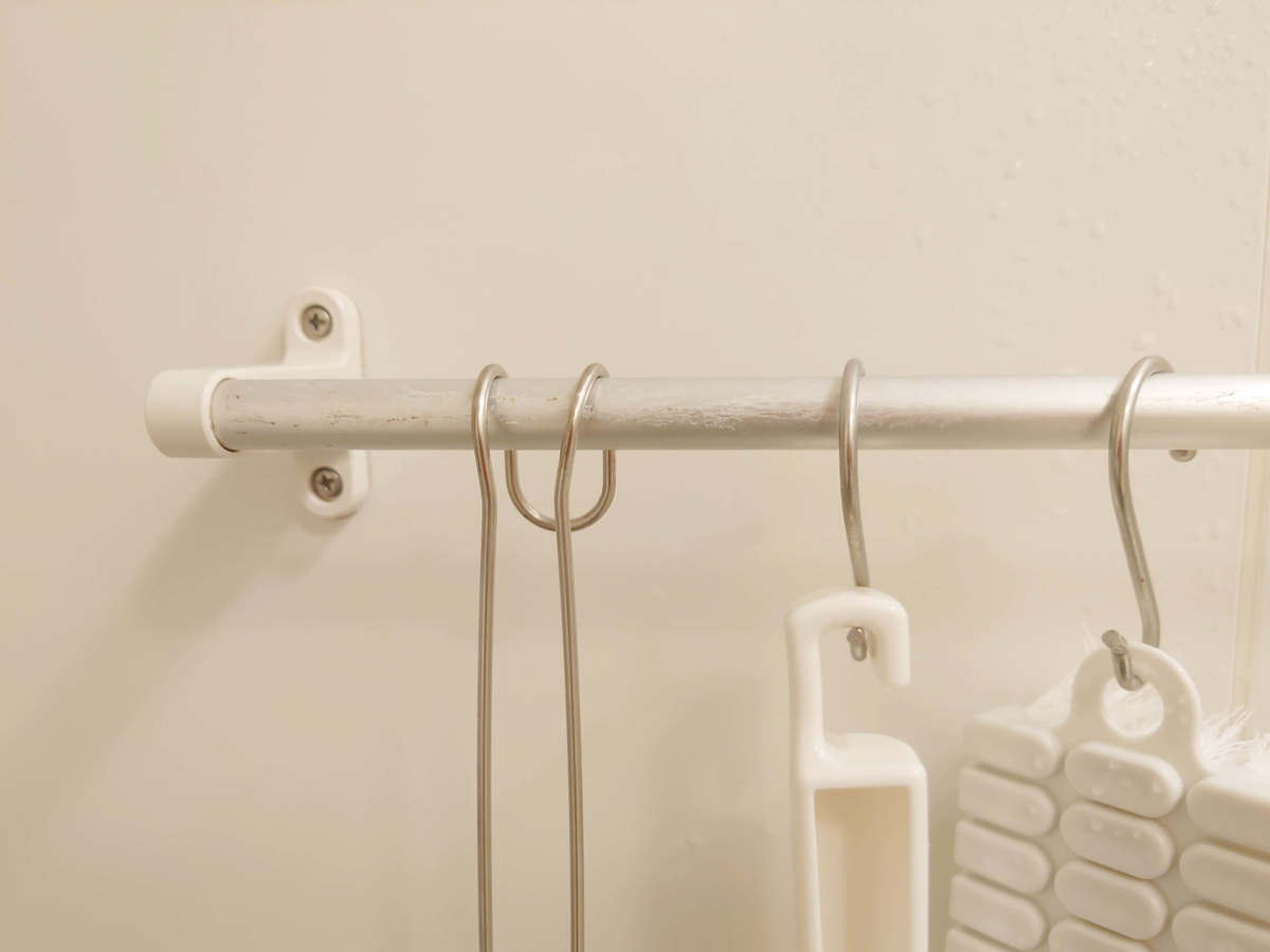 先が曲がっているため、バーに引っ掛けて収納できます。