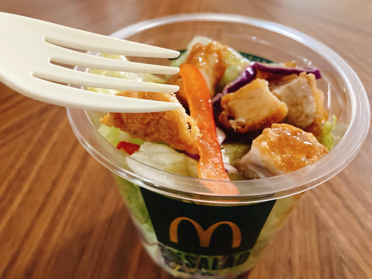 ナゲットをサラダにトッピングすると、食べごたえと満足感がでるのでおすすめです♪