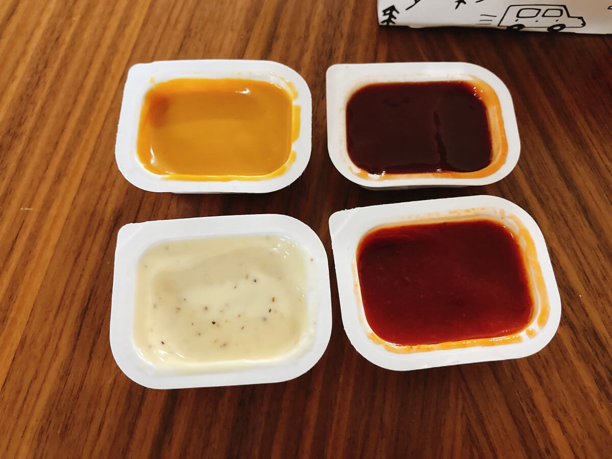 ソースは何にするか聞かれたら、「4種類ぜんぶください!」と伝えましょう♪