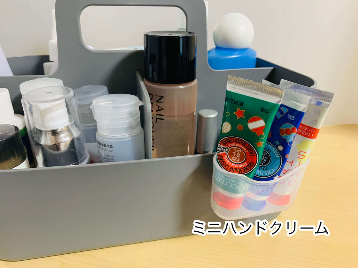 デザインがかわいい、ミニサイズのハンドクリームもおしゃれに収納することもできます。