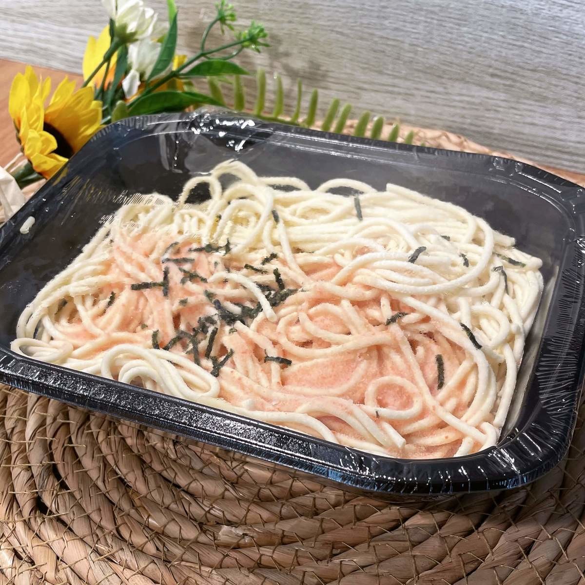例えば、マ・マーの「超もち生パスタ 濃厚明太子クリーム 270g」が270gで260円、日清食品の「もちっと生パスタ 明太子クリーム」が270gで300円です。