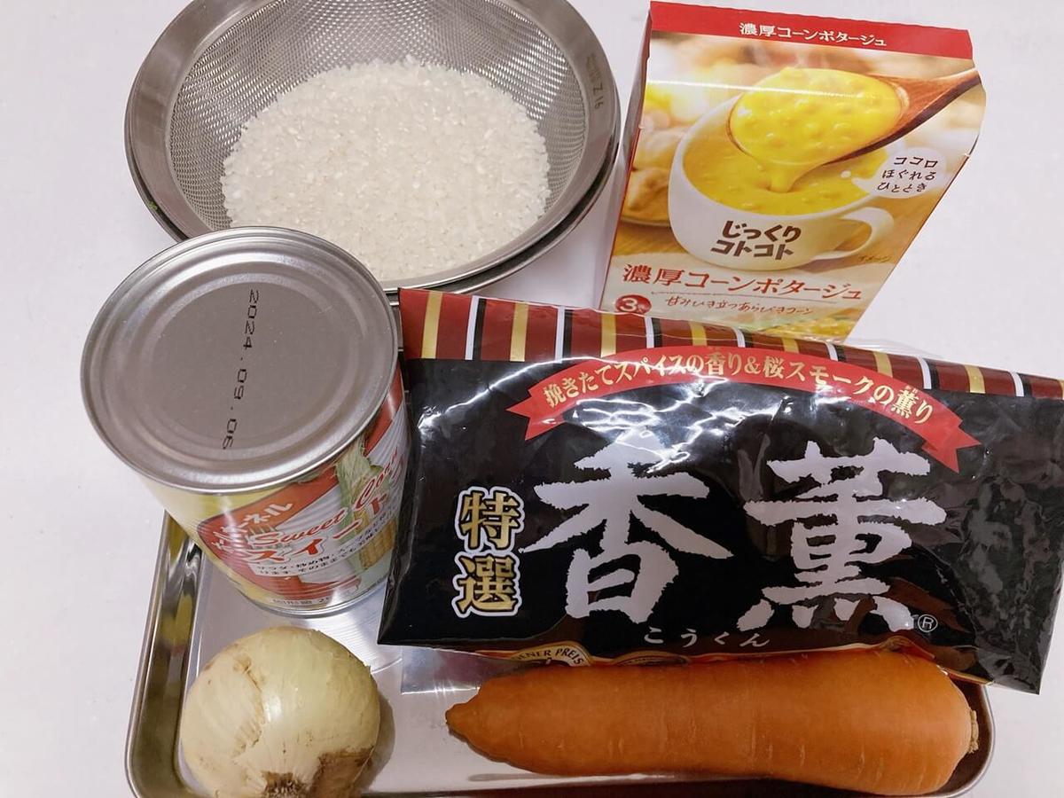 ここでは、人気テレビ番組家事ヤロウで紹介された、ポッカサッポロ公式『簡単炊き込みコーンピラフ』を作ってみました。