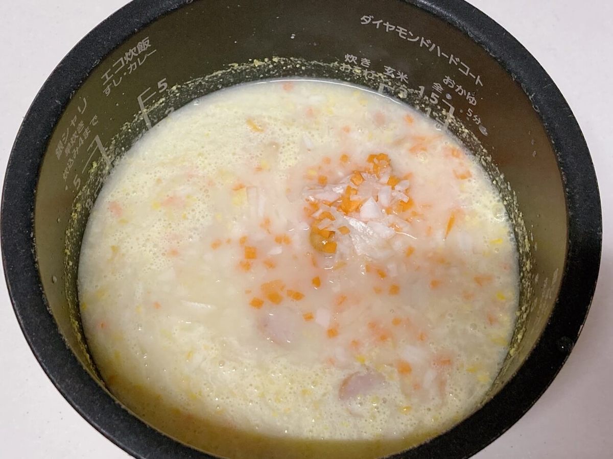 “濃厚”コーンポタージュを投入するので予想以上に濃く味が染み込んでるのではと思いきや、実際はふんわりほっこりする優しい味でした。