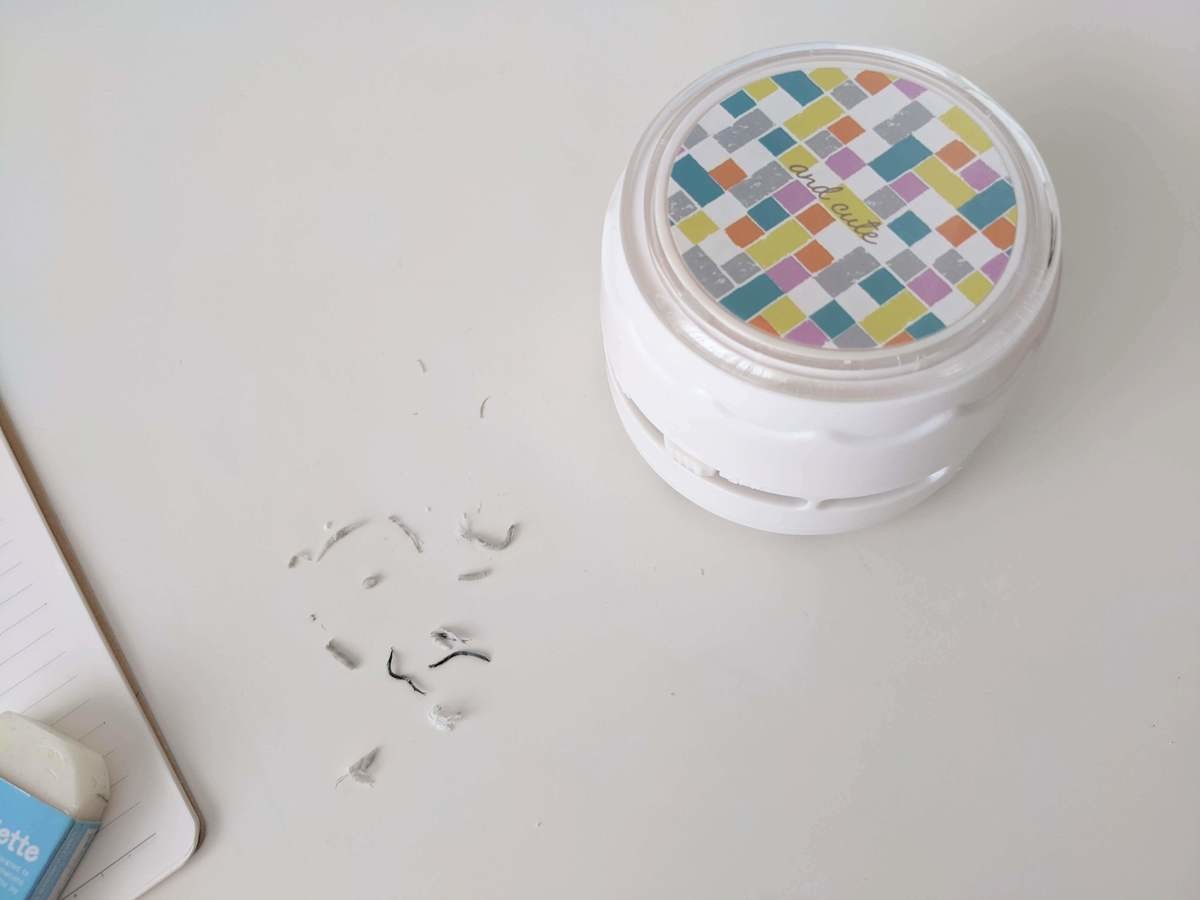 今までは手で集めて捨てていた消しカスが、ほんの一瞬でなくなりました! お菓子の食べカスもキレイに吸い取ってくれるため、おかげで日々のプチストレスが解消されました。
