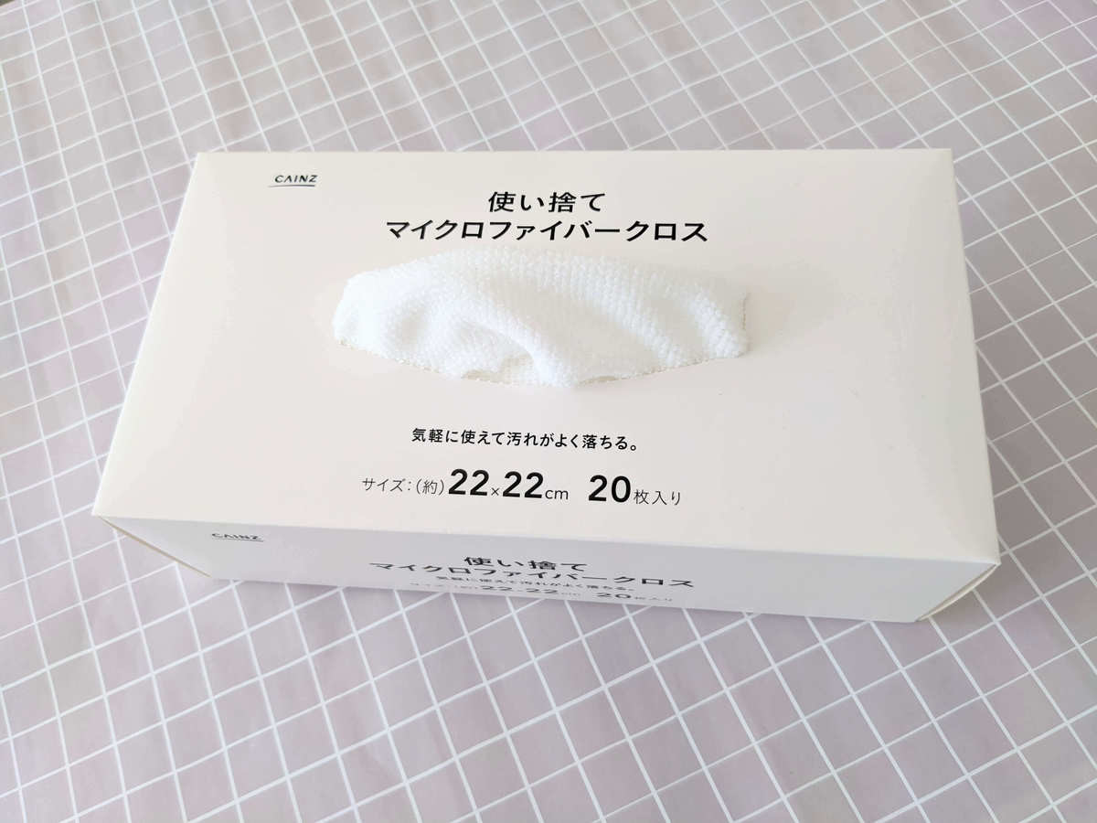 私がおすすめしているカインズの「使い捨てマイクロファイバークロス」です。 1枚あたり約20円というコスパの良さも魅力の一つ。
