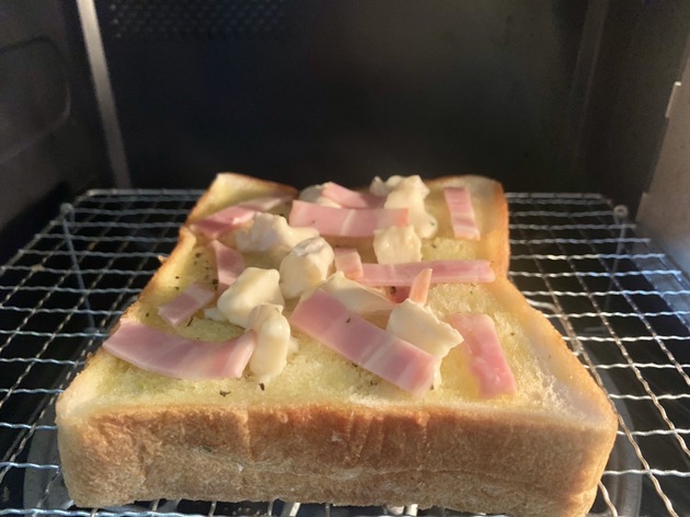 カマンベールチーズやベーコンを食パンの切り込みに挟むのが難しく、いくつかはパンの上にのせました。のせるだけでもおいしかったので、挟むのが難しい場合は上にのせて焼いてもいいと思います!