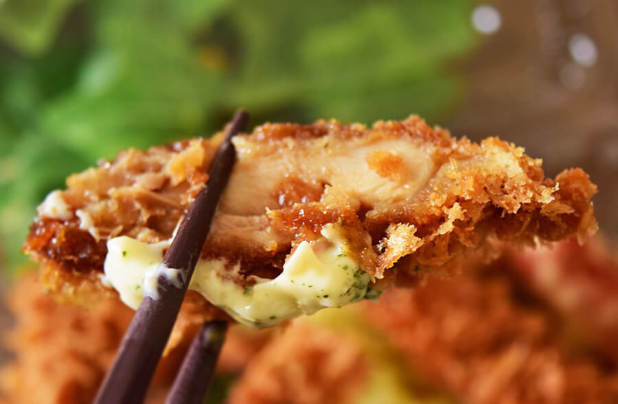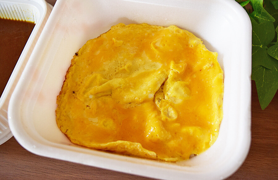チキンカツにかかっているソースは甘め。タルタルソースは酸味がなく、そこまで主張してきません。ふわふわオムレツは、だしがきいたようなおとなしい味付け。