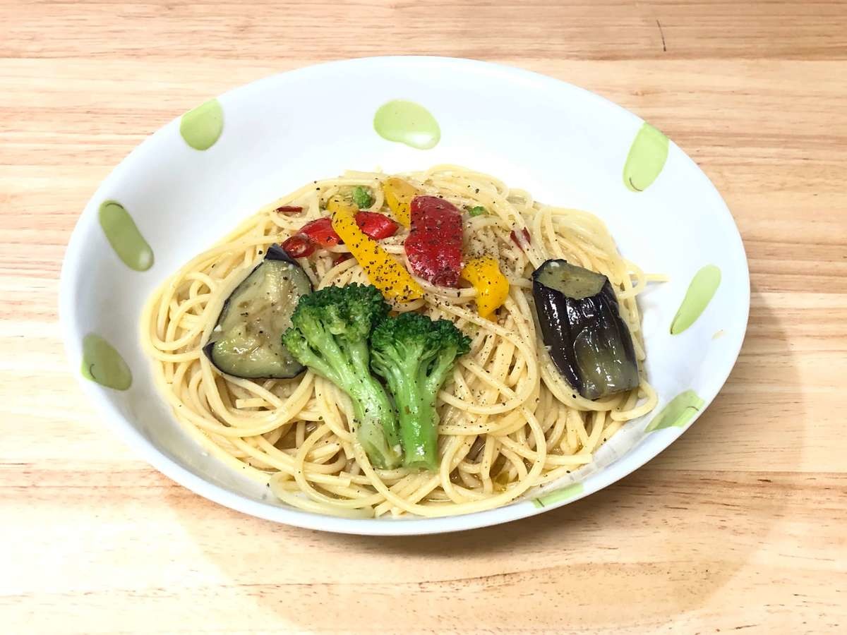 具はお好みのもので問題ありませんが、今回はお店にありそうなパスタをイメージしてなす、ブロッコリー、パプリカで彩り鮮やかにしてみました。