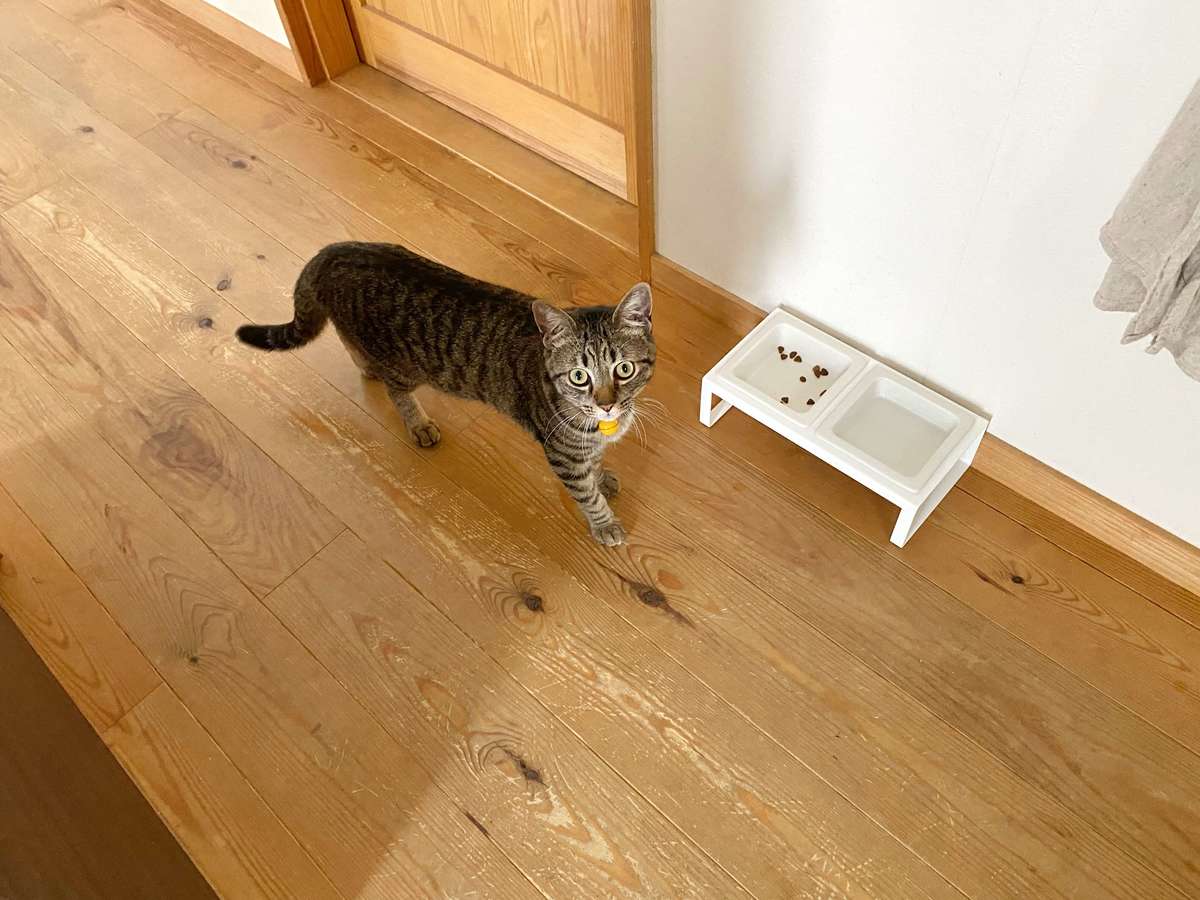 猫の食器洗い用のスポンジを別で用意すると場所をとることもあり、元々シンク洗いに使っていたニトリのカットふきんで、最近は猫のお皿を洗っています。