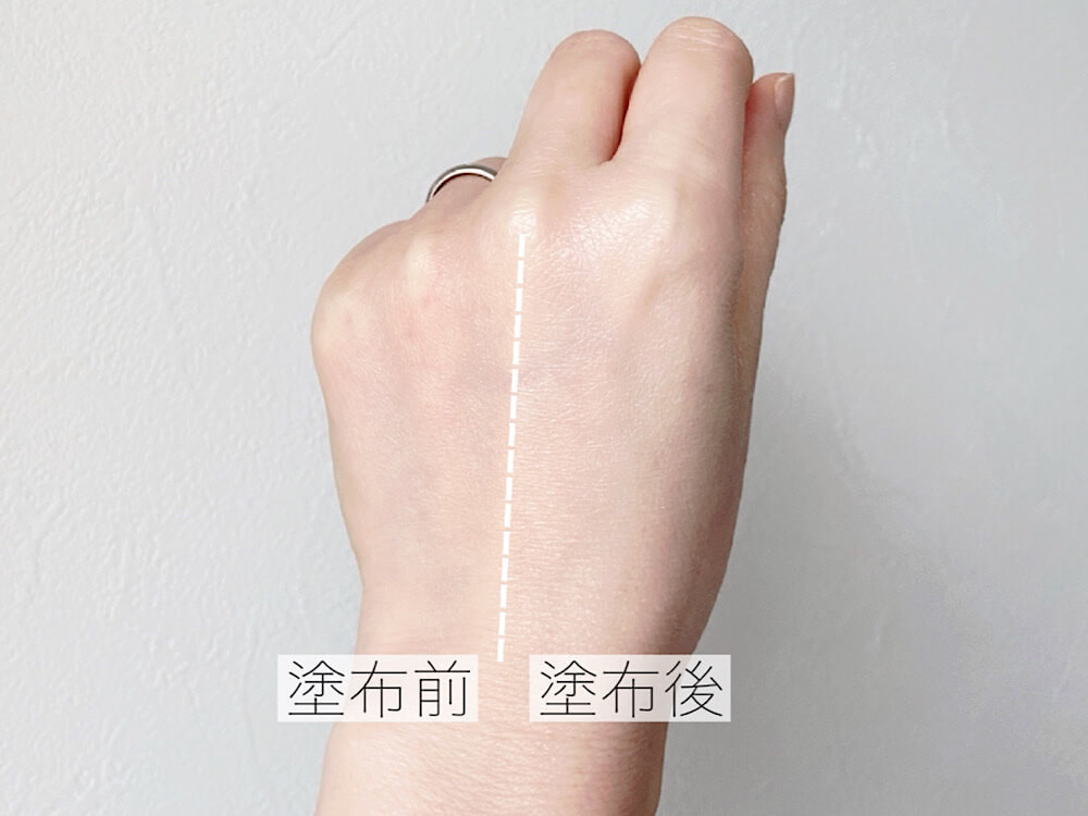 手の甲に半分だけ塗ってトーンアップできるのか調べてみました。