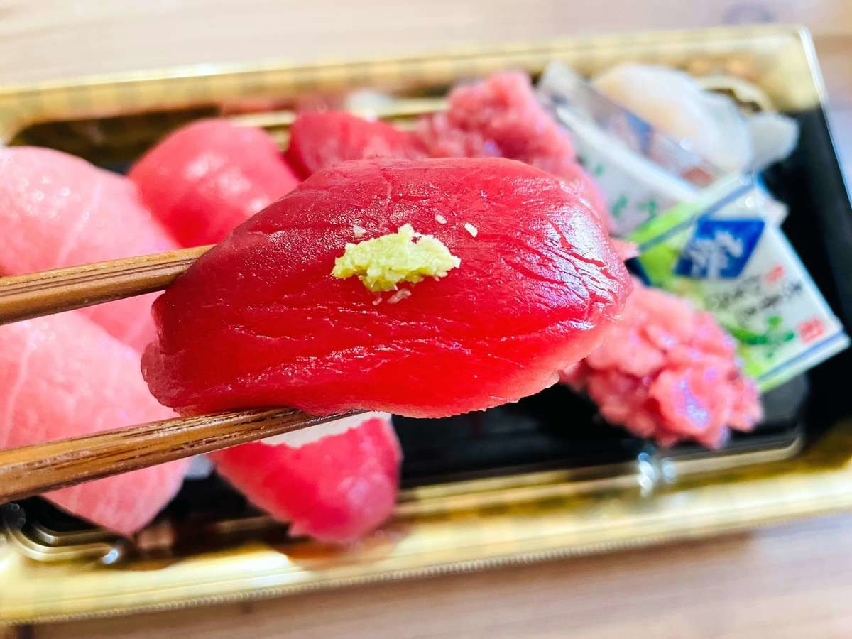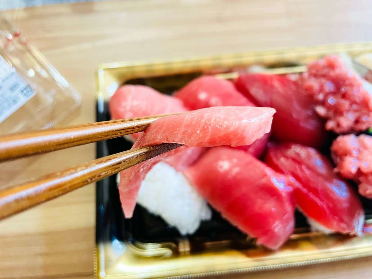 「喜鮪(きつな)」という国産の養殖本マグロを使用しているので、お高いのは当然かもしれませんが、スーパーのカゴに入れる際、こんなに手が震えたのは初めてです(笑)