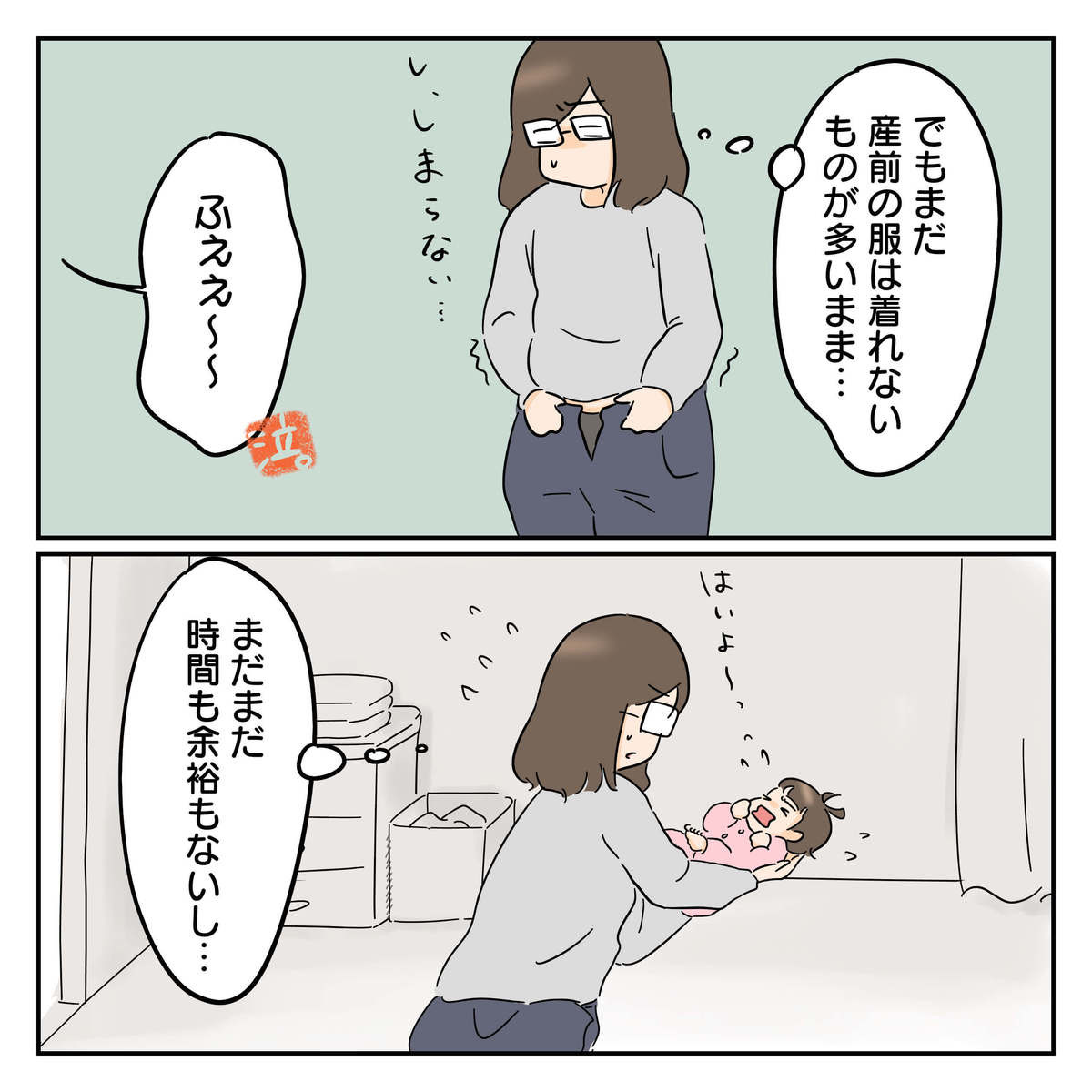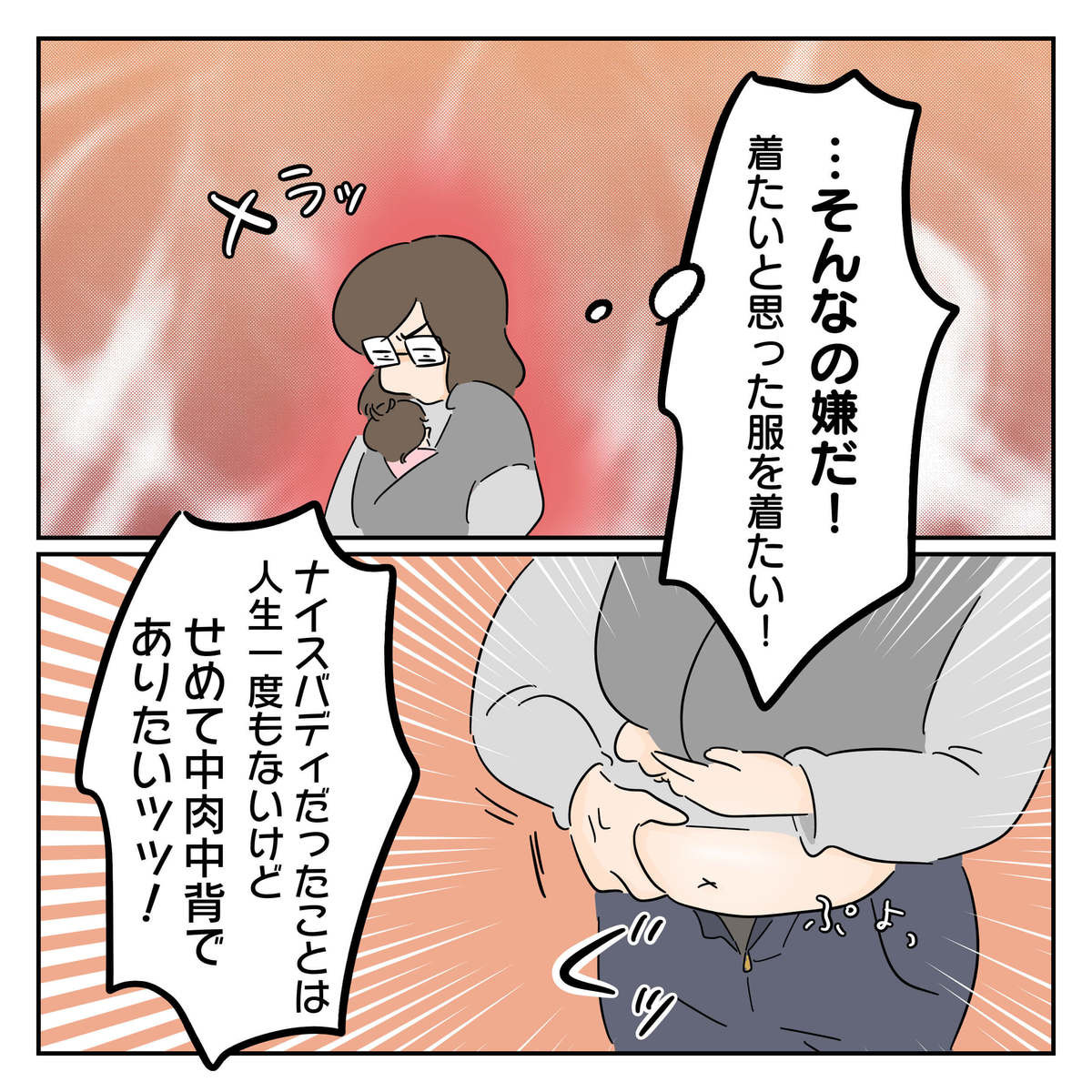 【共感!産後太り漫画】出産しても好きな服を着たい(号泣)メラメラ燃える贅肉への闘志【17kg太って17kg痩せた後ダイエットを辞めました⑨】