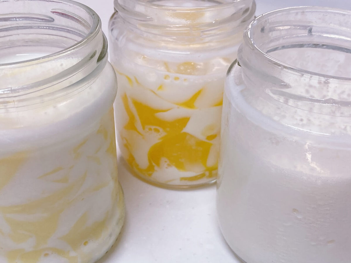 シェイク必須なのでフタ付き瓶の確保は必要ですが、100均には色んなサイズの瓶があるので調達にも困りませんよ。