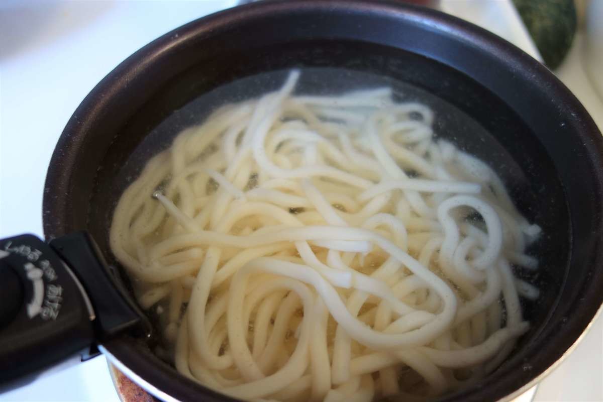 茹でる時はさし水をしながら「沸騰させない状態」をキープしてください。沸騰している状態で茹でると、うどんの表面が溶けて粗くなってしまうんだそう。