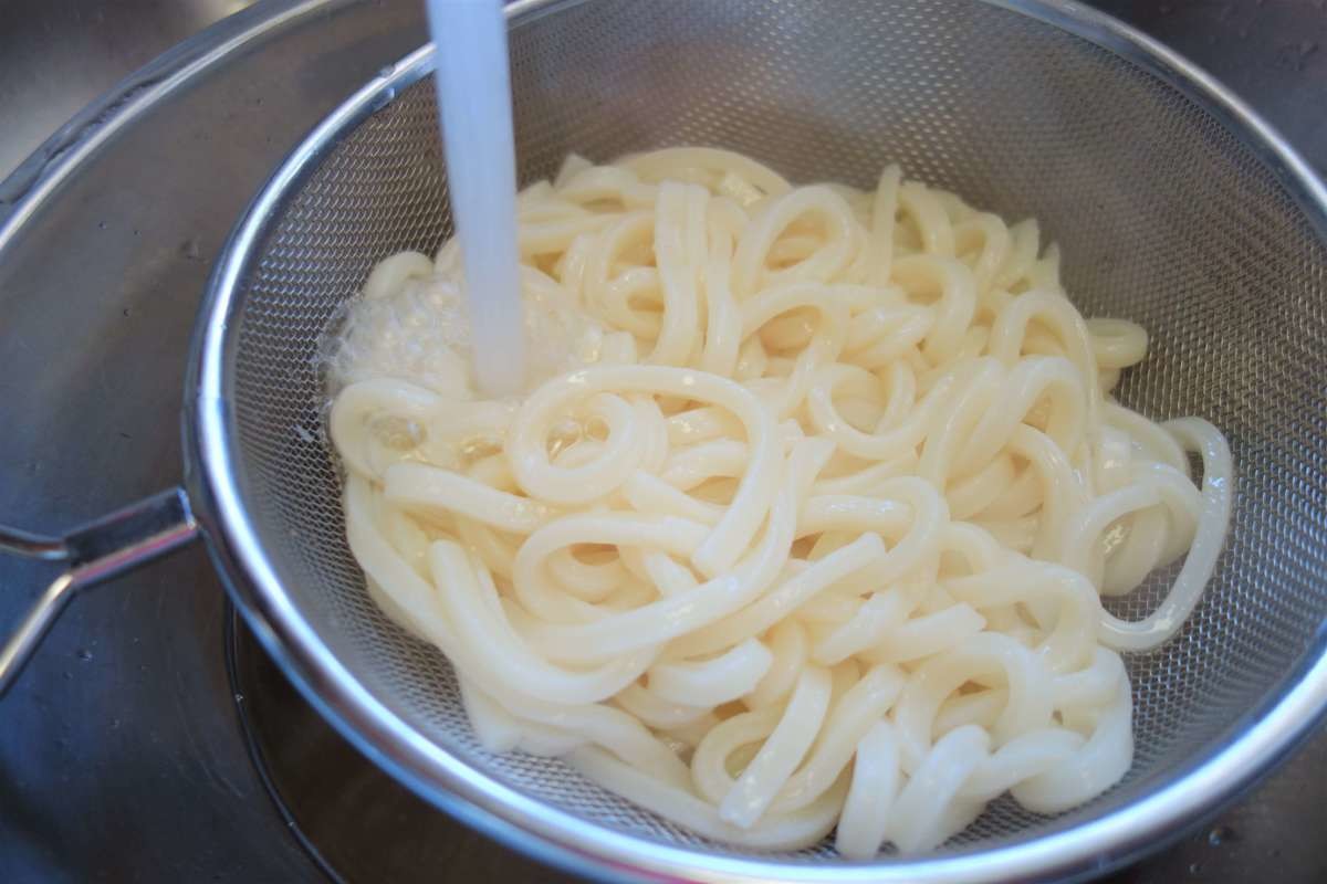 うどんの冷やし方①常温の水でうどんのぬめりを取る