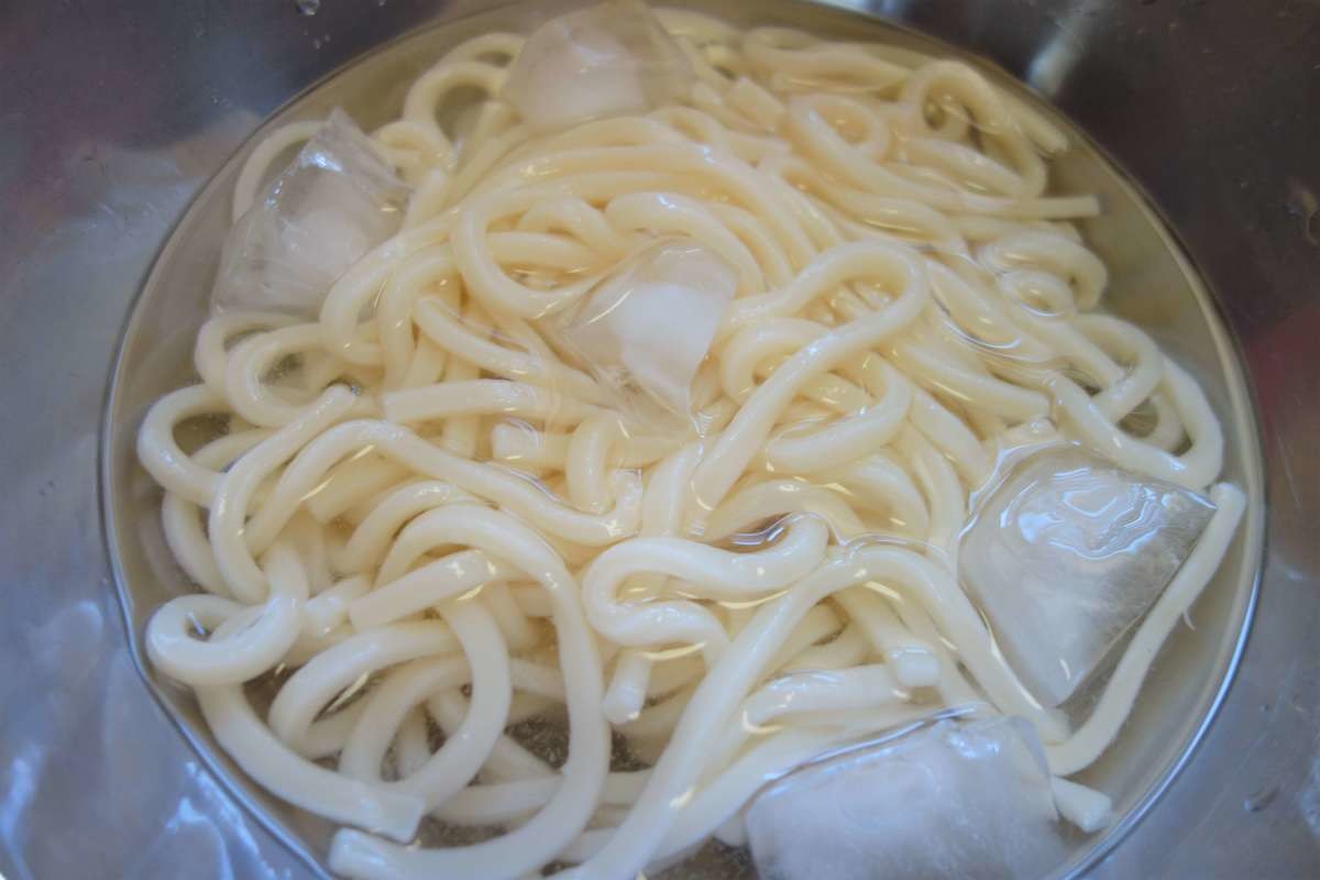うどんの冷やし方②氷水に入れて締める