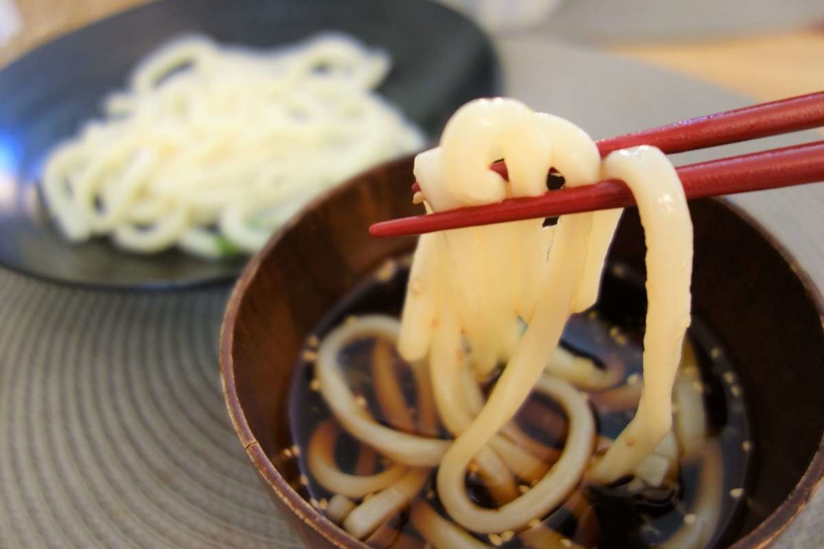 茹でたてのうどんを一気に氷水で締めてしまうと、表面だけが硬くなり食感が悪くなってしまうそうなので注意してください。