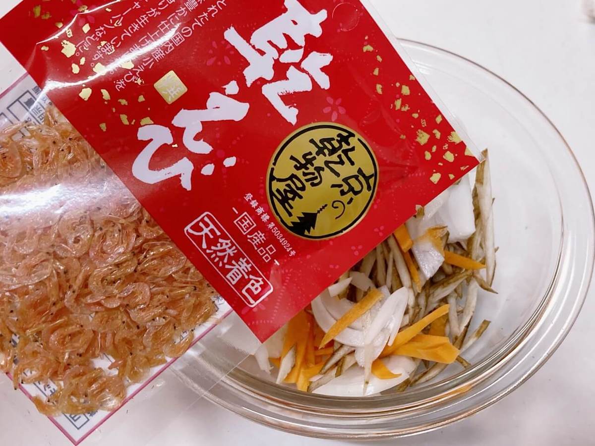 桜えびはたくさん入れるほどジューシーで美味しいですね。さらにうどんが加わることで、よりボリューミーで食べ盛りのお子さんにピッタリ。