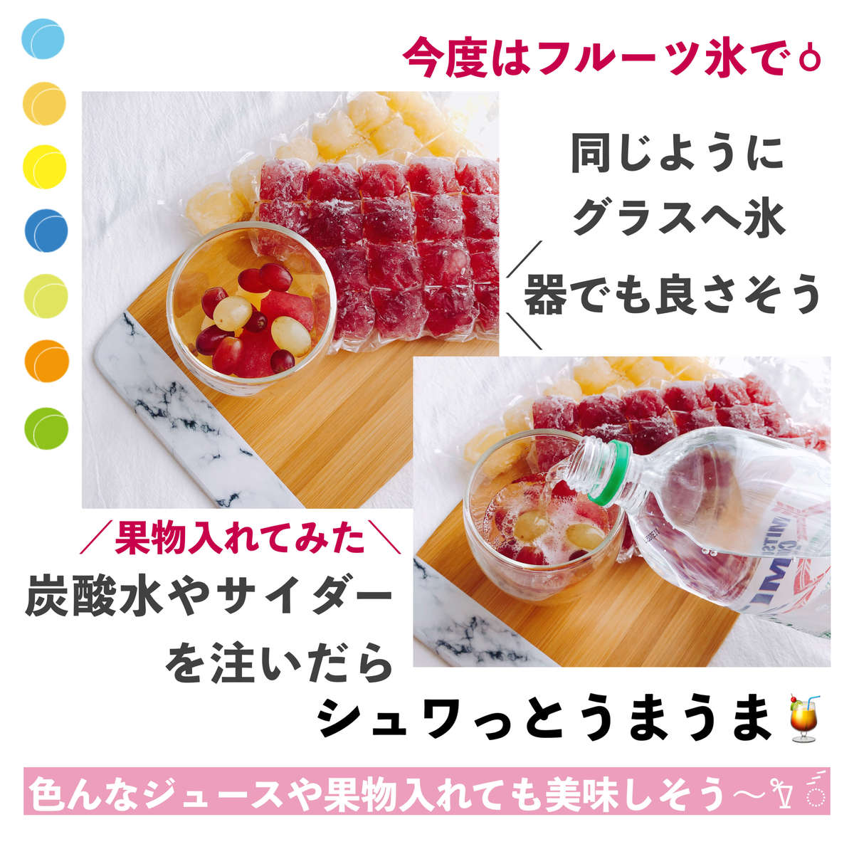今回はジュースなどで作っていますが、もちろん水を入れて普通の氷を作ることも可能です!