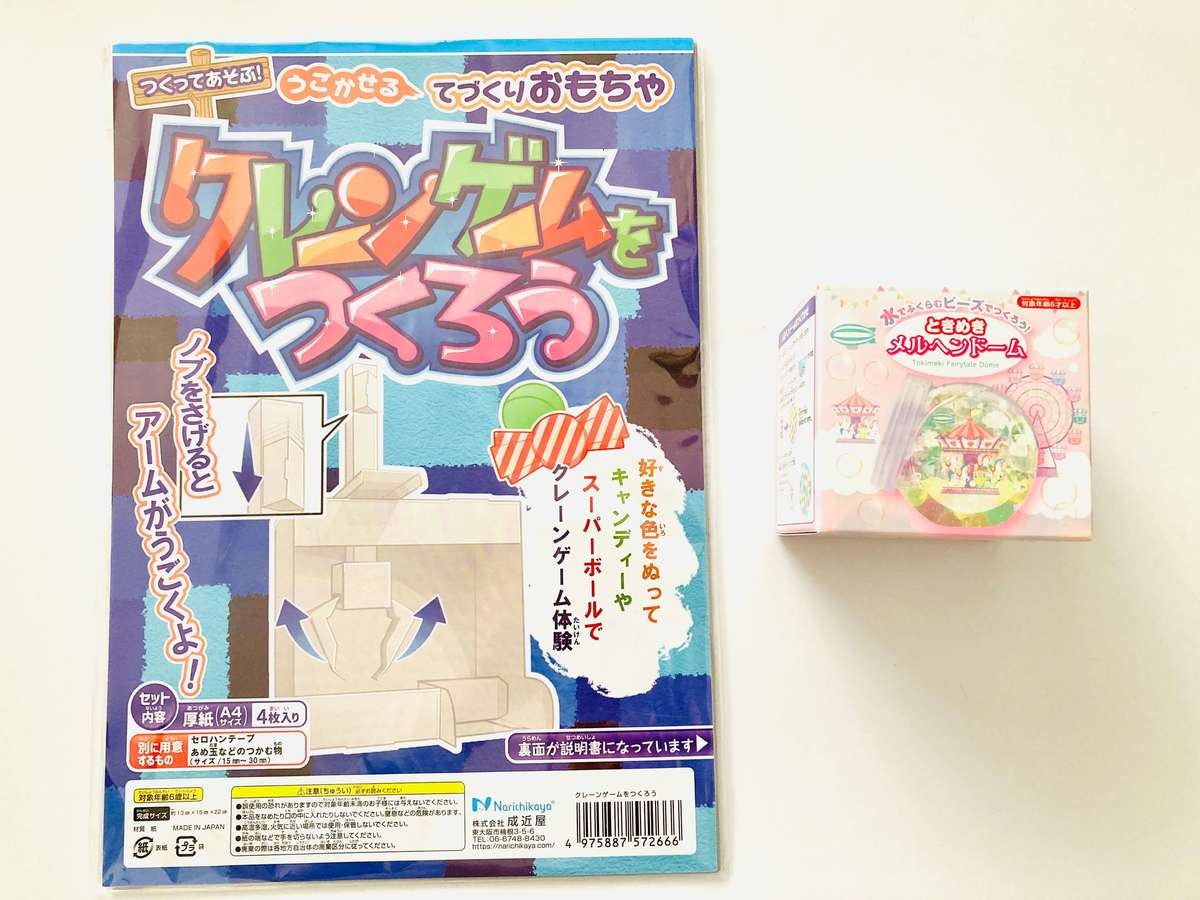 セリアで見つけたのが「クレーンゲームをつくろう」と「ときめきメルヘンドーム」です。どちらも110円(税込)で、子どもも大人も手作りが楽しめます♪