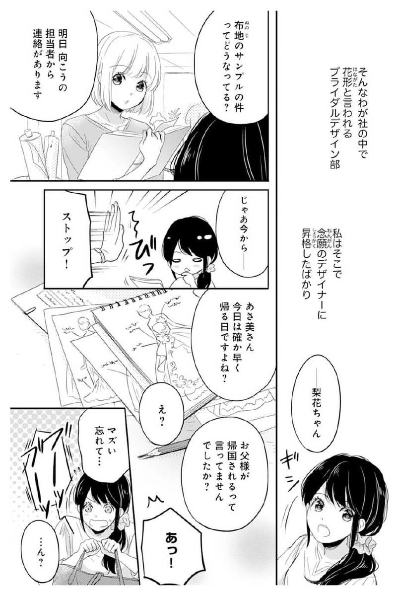 アパレル企業で念願のデザイナーとして働くあさ美は、投資家である父の差し金で自社の社長・孝文とお見合いすることに!