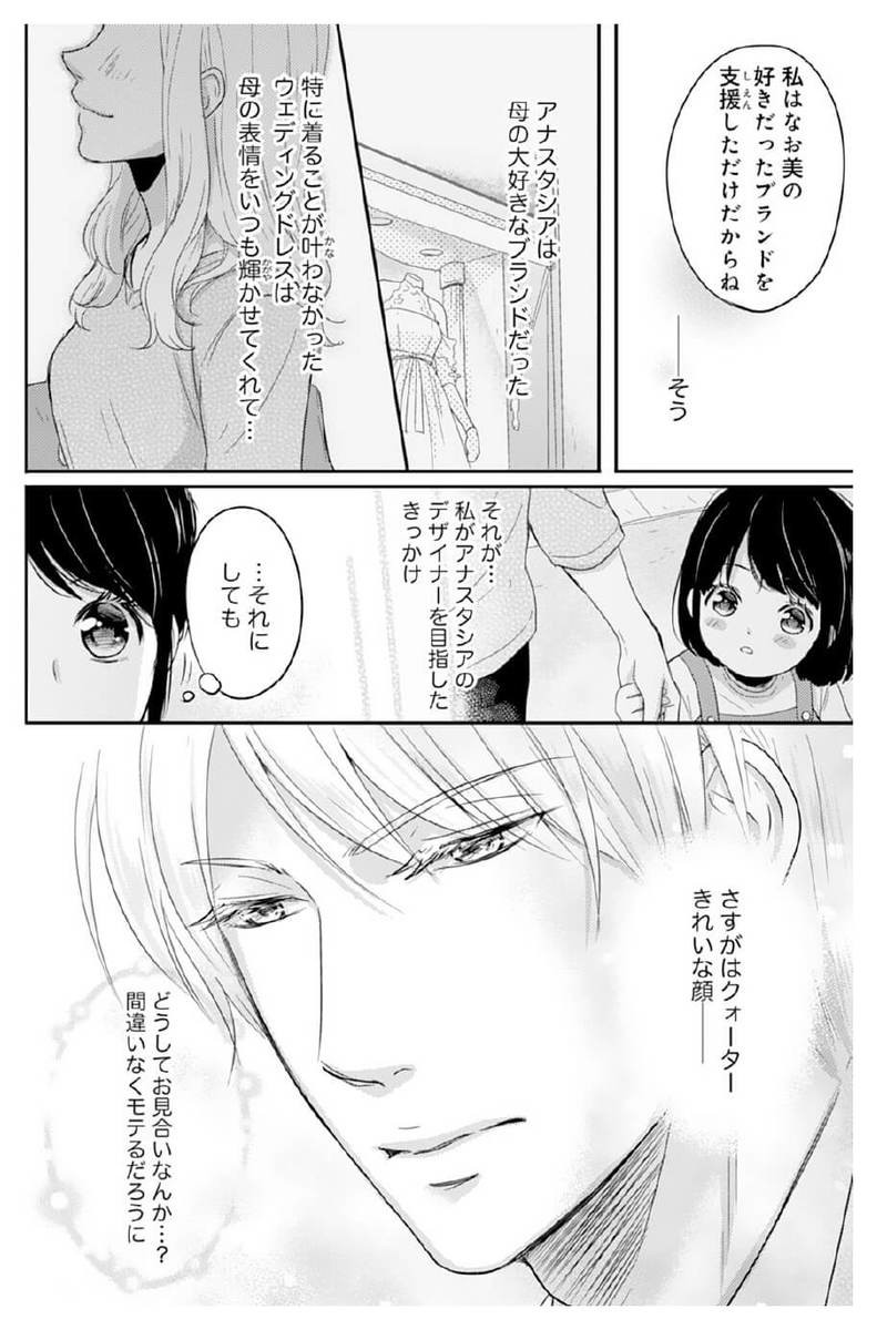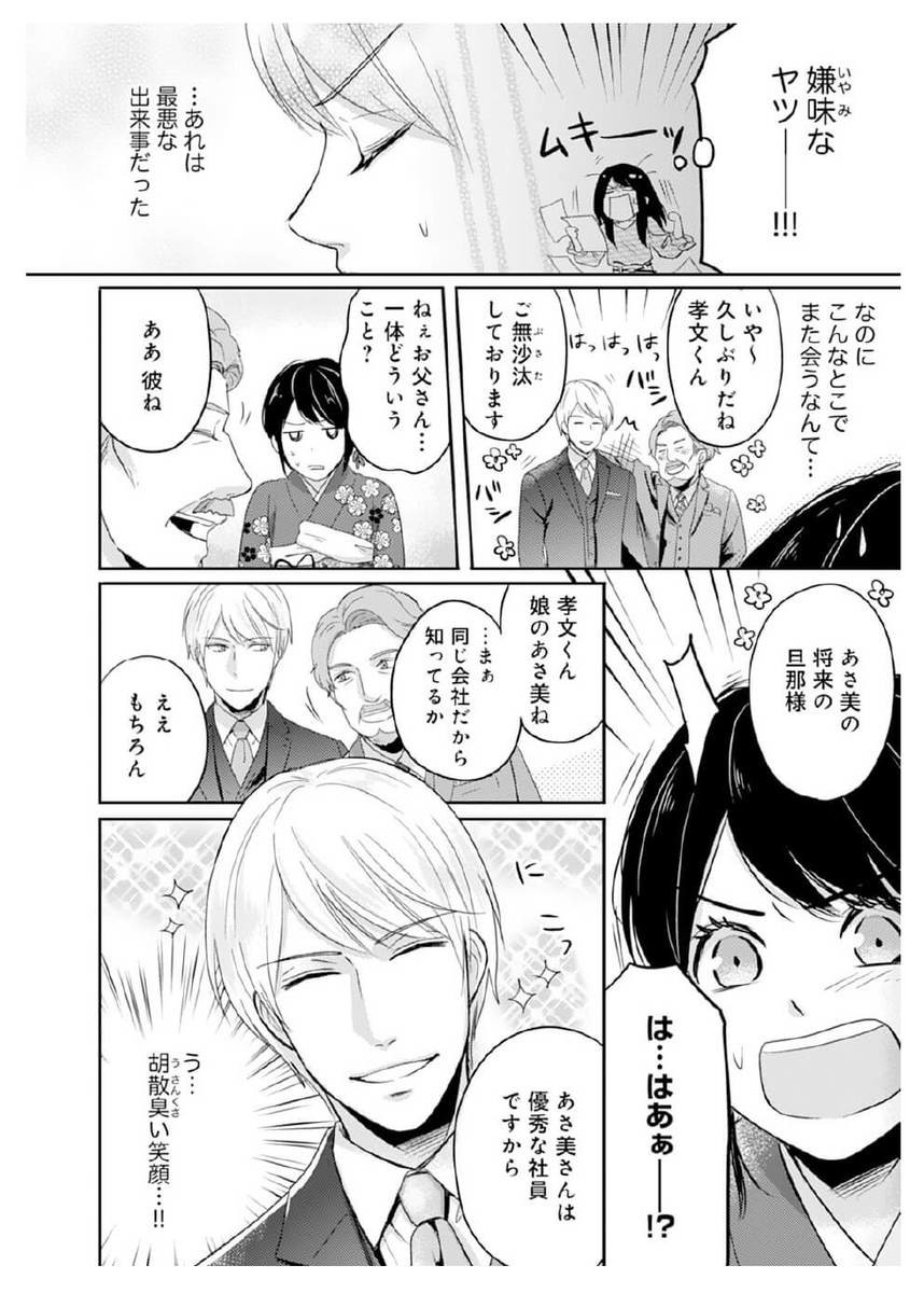 アパレル企業で念願のデザイナーとして働くあさ美は、投資家である父の差し金で自社の社長・孝文とお見合いすることに!