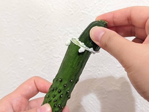 安心してください!ヘタ1箇所だけをくるくるするだけで、きゅうり全体のアクが抜けますよ。