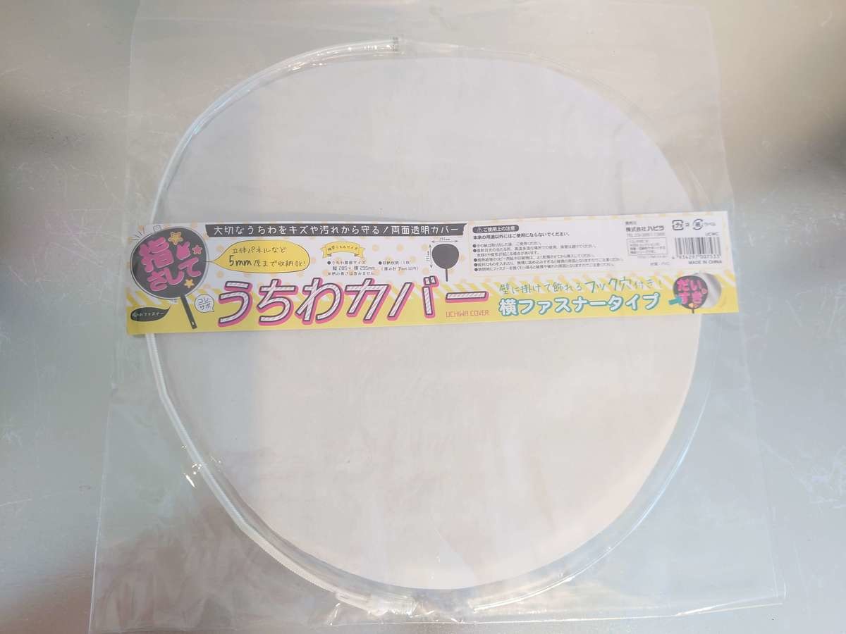 透明なビニール素材のカバーで、ジャンボうちわに対応したサイズなんです。