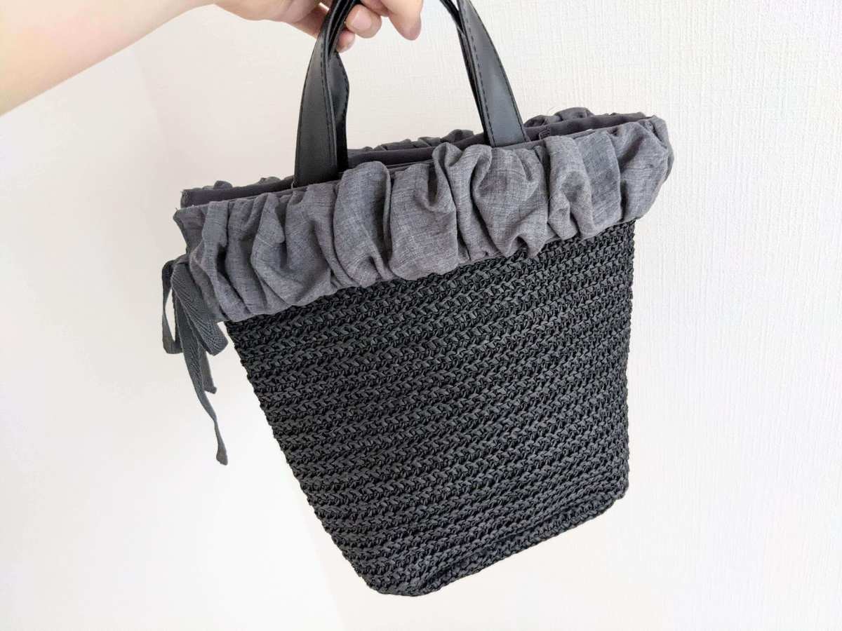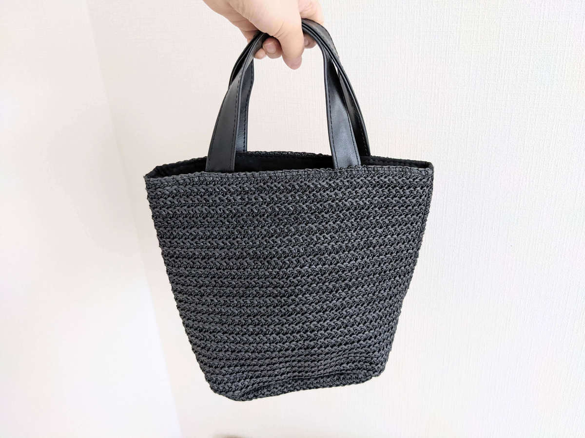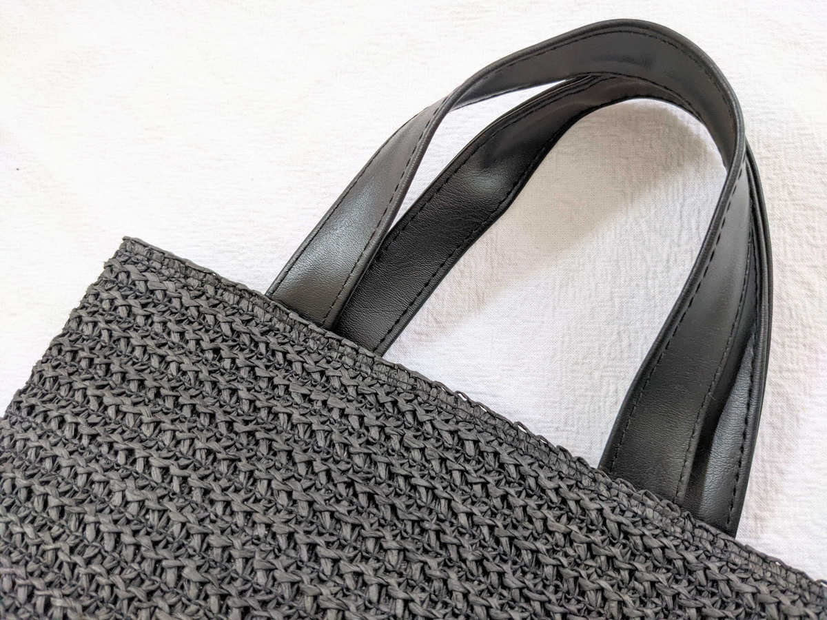 バッグの持ち手は、550円とは思えないほどしっかりした作りです。 質感もいい感じで、ここも高見えポイントになっています。