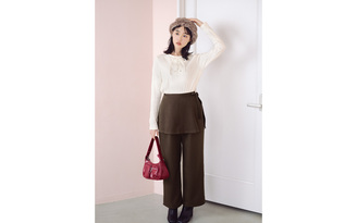 ・パンツはこっくりしたグリーンで秋らしさを出して