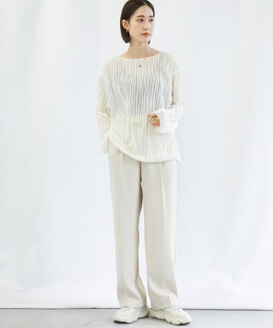・ゆったりシルエットの半袖サマーニットはテーパードパンツですっきりと