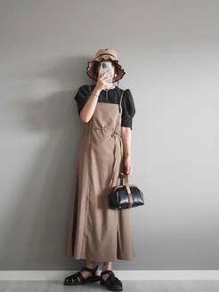 ・半袖トップスにキャミワンピを重ねて、ボトムもスキニーパンツをレイヤード