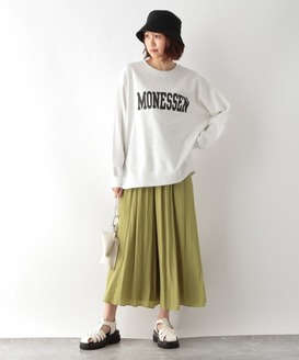 ・ヒップまで隠れるオーバーサイズのTシャツはニットナロースカートできれいめに
