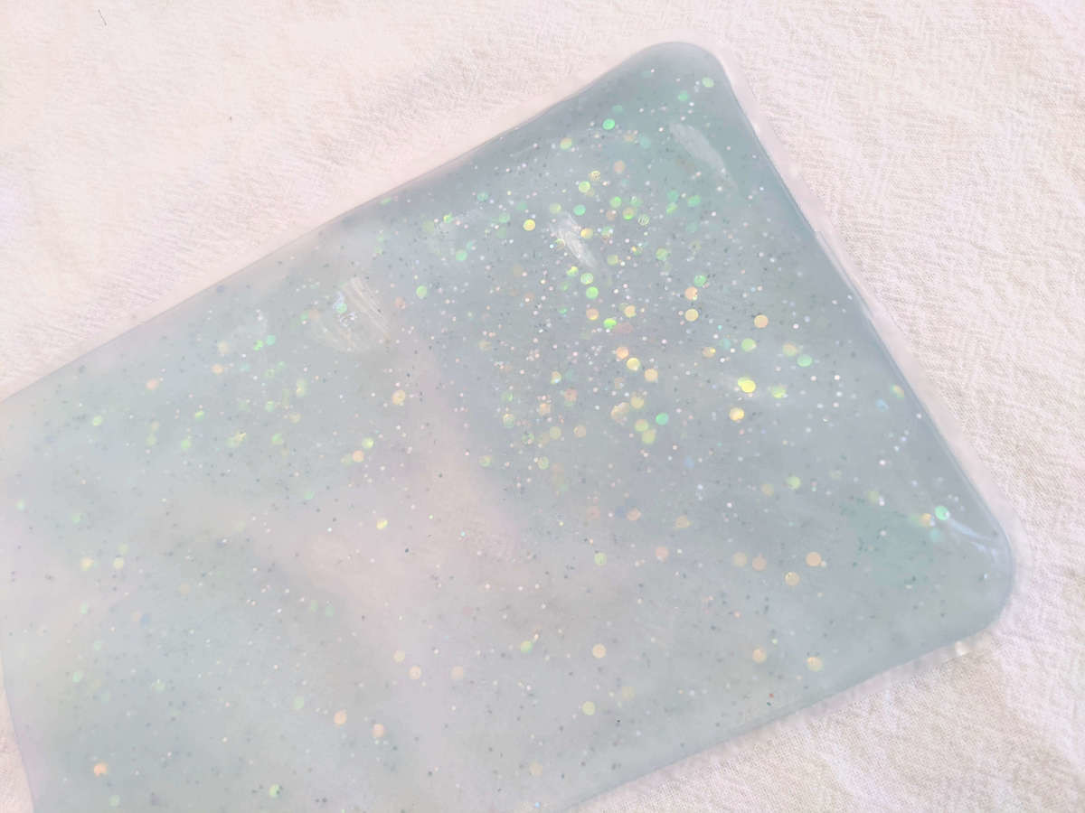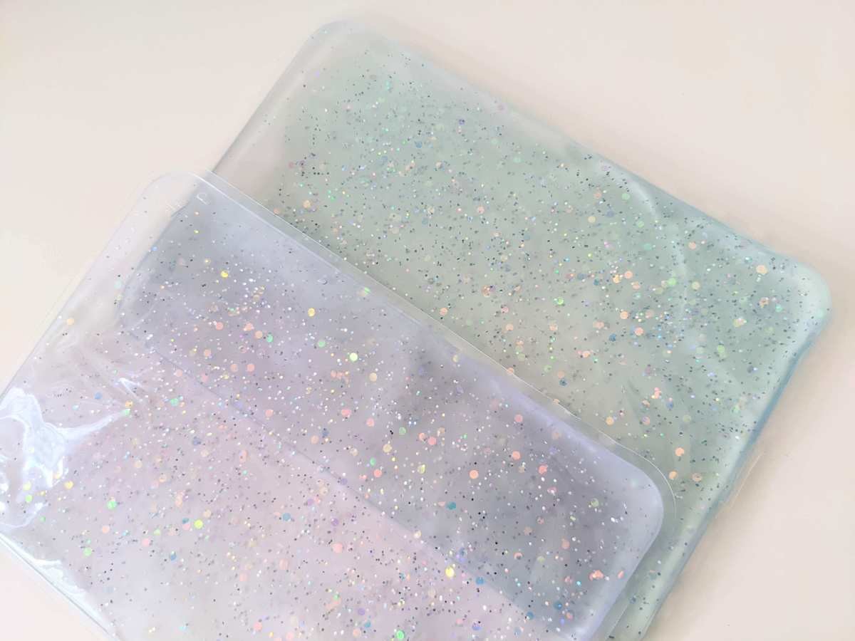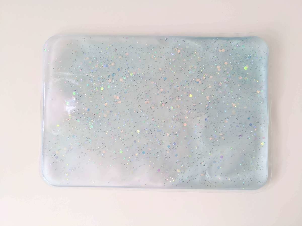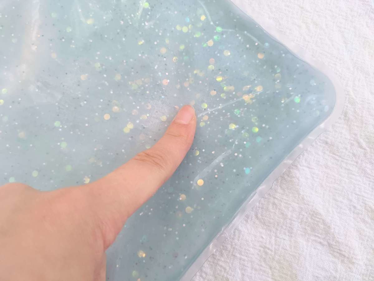 ラメ入りのジェルが入っていて、冷やしても固くならないタイプです。 厚みはないので、枕の上に乗せても高さが気になりません。