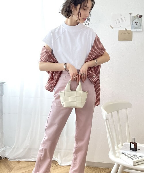 ・淡い色のボトムスと合わせて、透明感のある雰囲気を演出するのがおすすめ