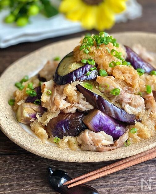 茄子と豚ばら肉を香ばしく焼き、生姜入りのおろしポン酢だれをかけた一品。具材のこってり感がおろしポン酢でマイルドになり、旨みを生かしつつさっぱりおいしくいただけます。