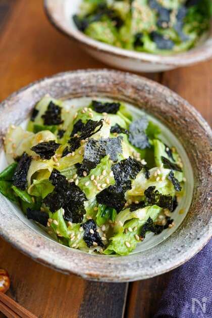 包丁・コンロ・レンジなしでOKの、お手軽チョレギサラダ。しっかりとした味付けで、白ごはん&ビールのお供にも◎。レタス1/3個をぺろりと完食できるので、大量消費したいときに役立ちます。(調理時間:3分)