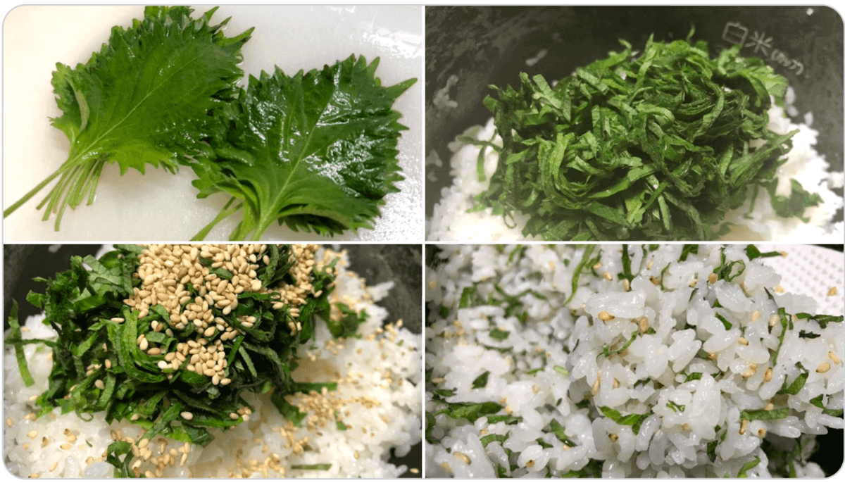※今回は、お米2合を目安に大葉10枚を使用しました。