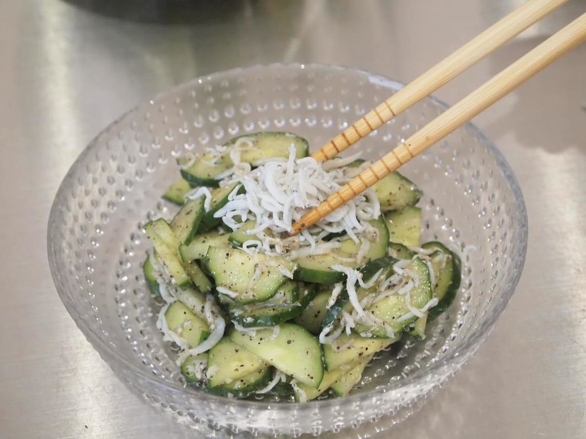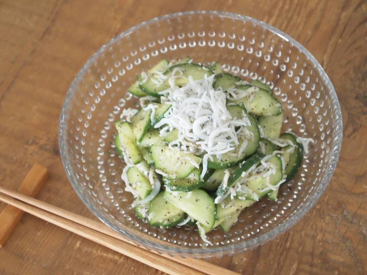 一口食べると、ごま油としらすが、きゅうりと相性抜群です。