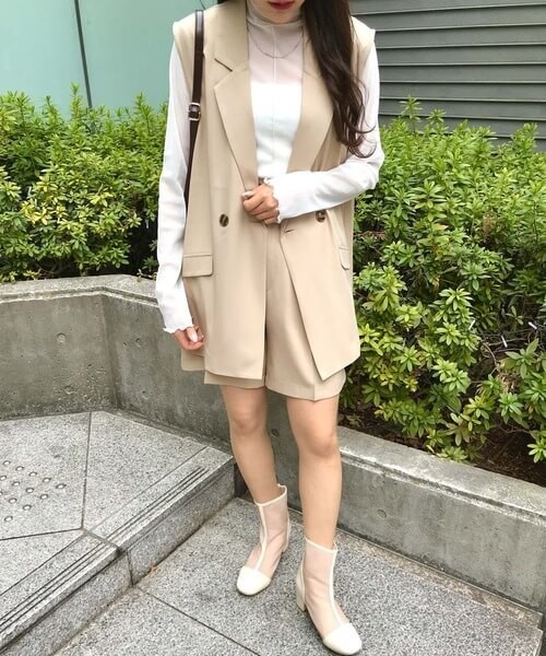・同系色のアウターと合わせて、セットアップ風を楽しむのもGood