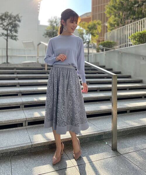 ・膝下がフレアになっているので、大人かわいい印象にまとまります