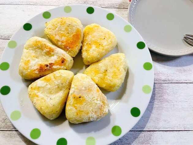 食べてみると、しっとり食感のじゃがいもとトロリと柔らかいチーズの相性が抜群にいいですね。 片栗粉をまぶしているからか表面はもちっとした食感になり、とってもおいしいです。