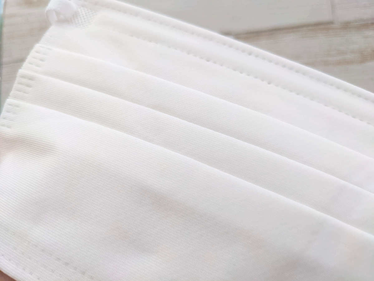 毛羽立ちはなく肌ストレスを感じにくいため、お肌が敏感な方にもしろくまちゃんマスクはおすすめ! 少し伸縮性があるためゴワゴワ感もなく、不織布のような布のような不思議な着け心地です。