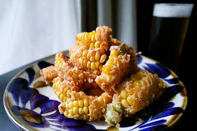 まずは、とうもろこしの唐揚げです。野菜の唐揚げ?と思うかもしれませんが、これが美味しいんです!