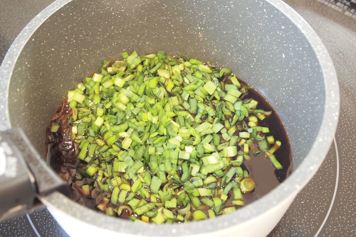 鍋にしょうゆと削り節を入れて加熱し、沸騰したらニラを加えて火を止めます。