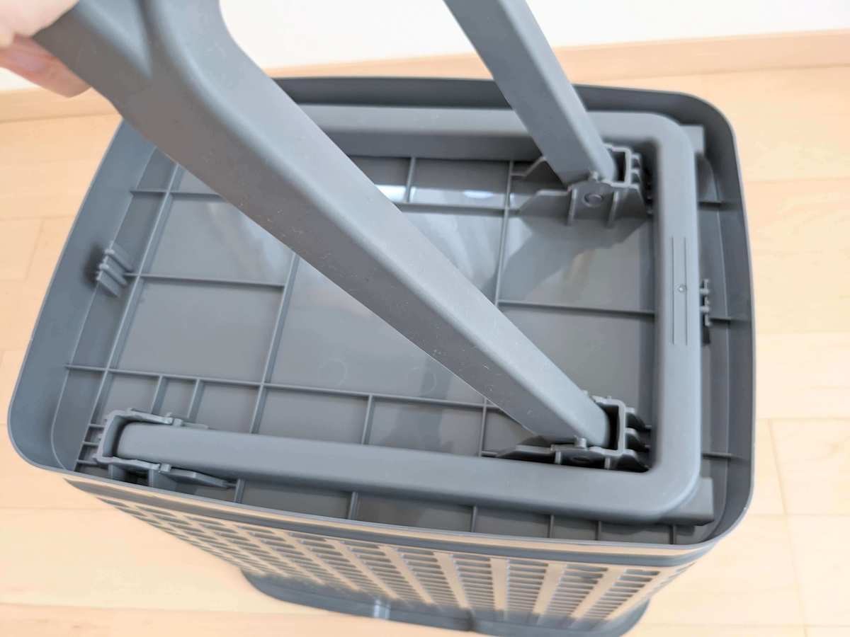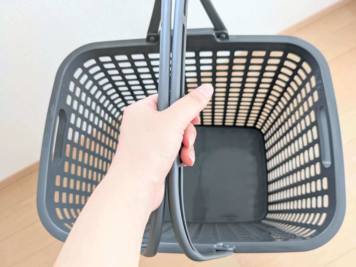 ですが、買い物かごと同じ形状なので、手が痛くなることもなく持ち運びもラクチンです。