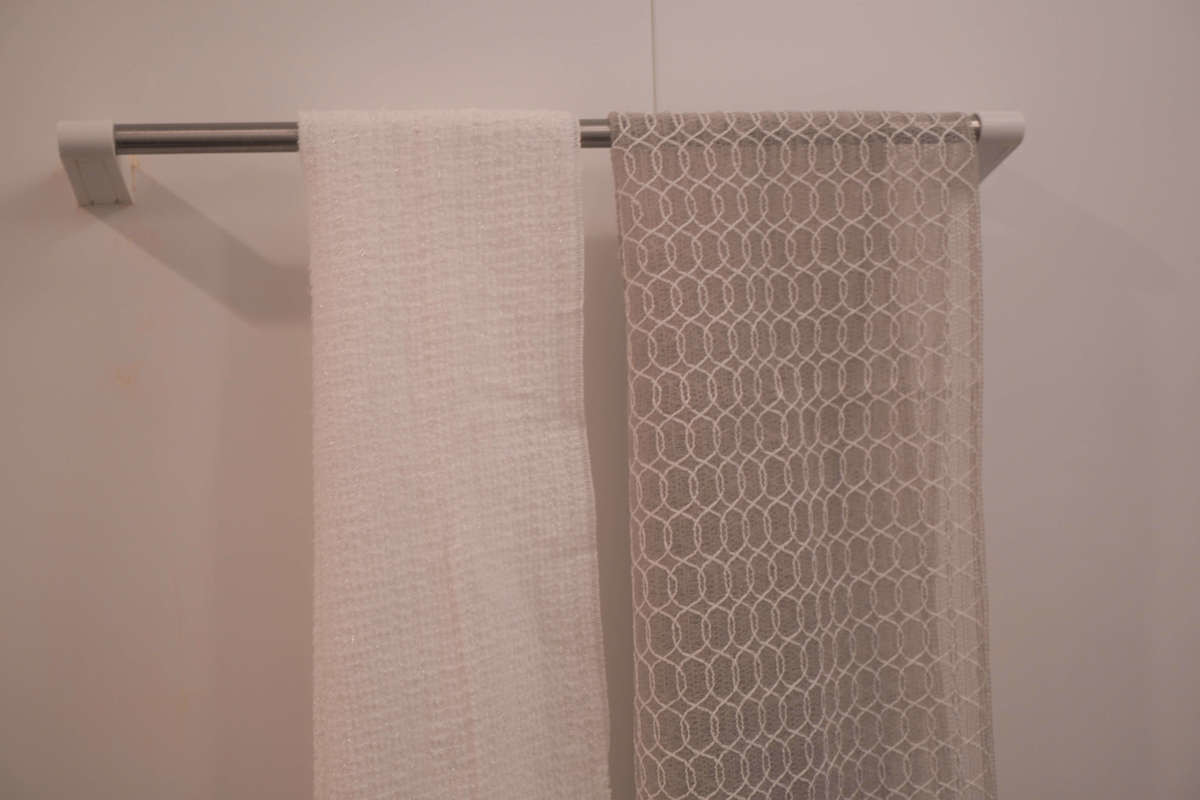 ハンガーにかけてボデイタオルをバーに吊るすとこのようになり、バーの使えるスペースが大幅に増えました!