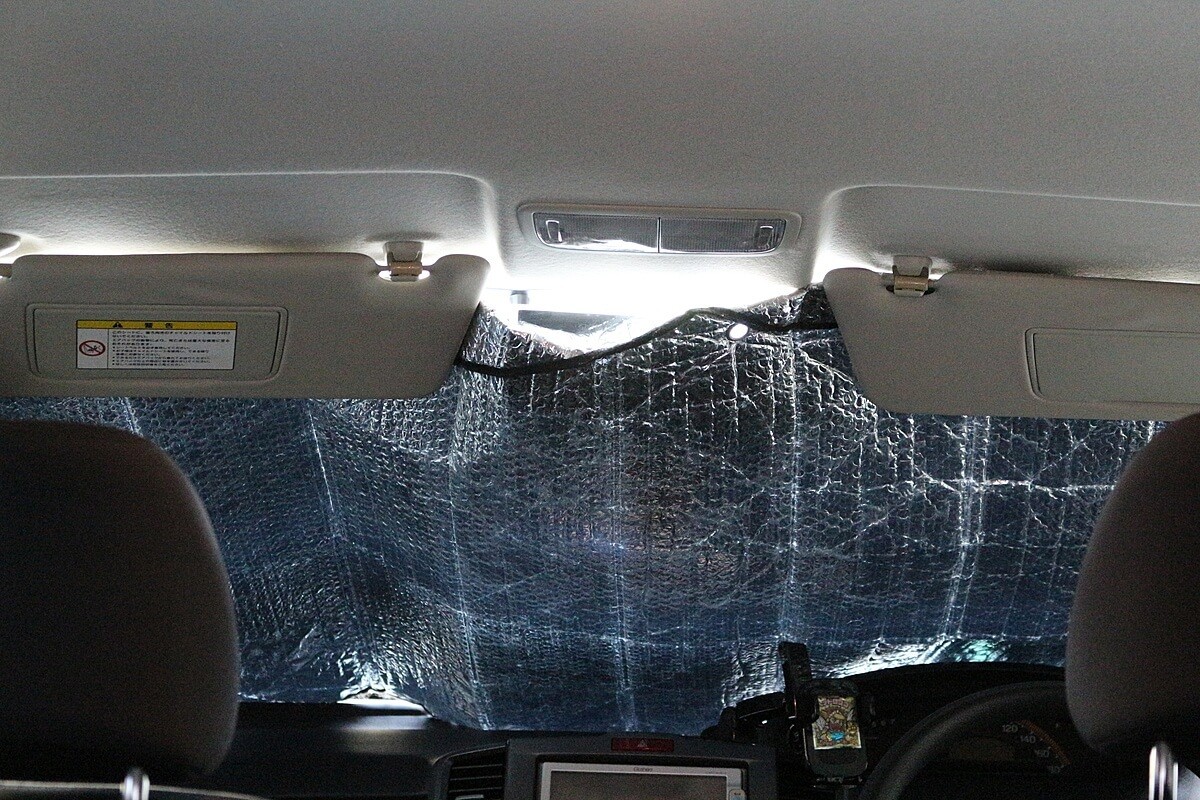 フロントガラス全面を外から覆うので、車内への直射日光が防げる