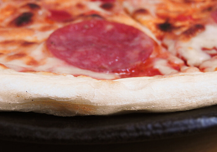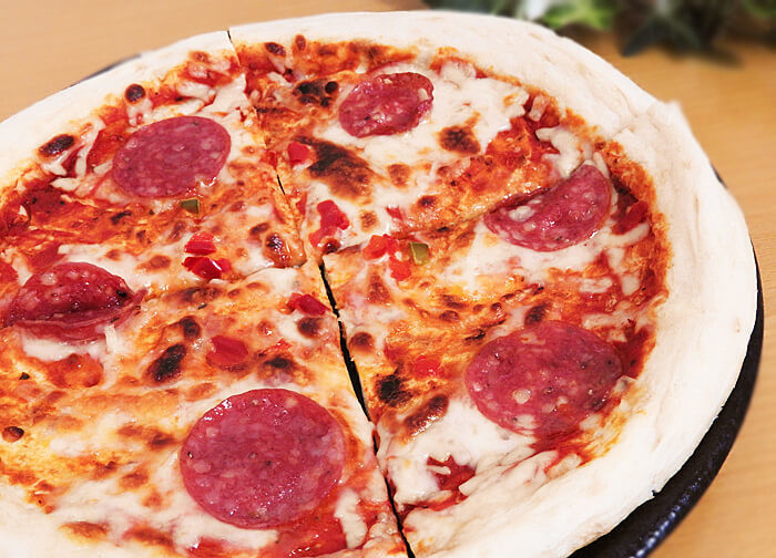 見た目は薄いピザ生地ですが、想像以上にもっちもち。低価格帯のピザなのに、ピザ生地が美味しいです。